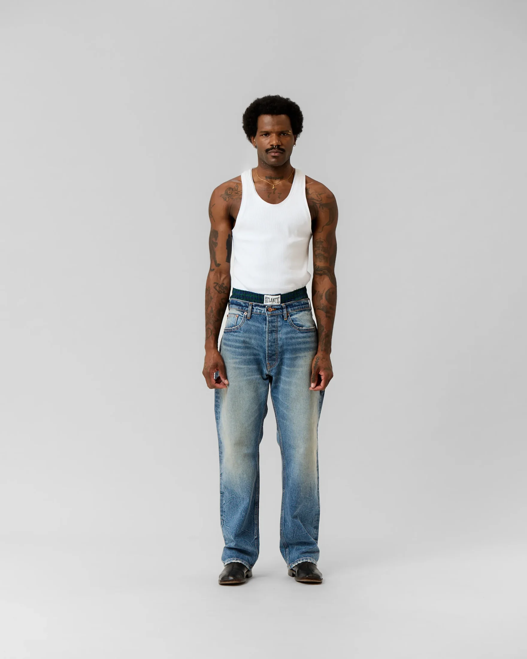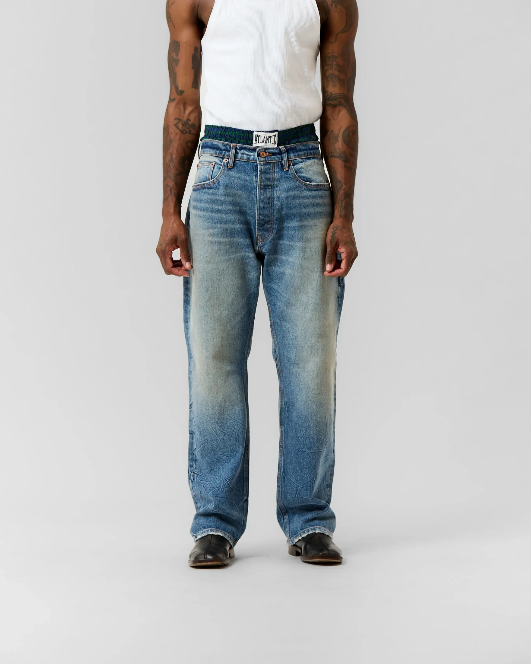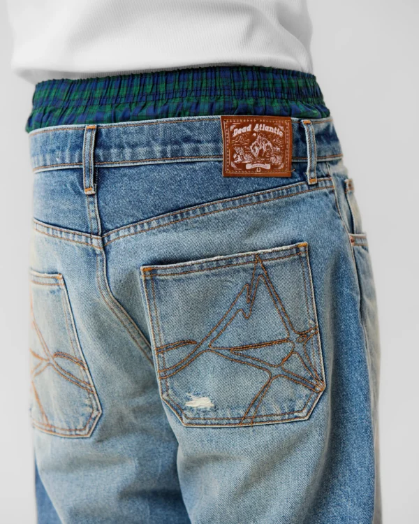 14.5 oz denim with our classic Dead Atlantic logo embellished on rear pockets. Our favorite cut with a 1 of 1 unique wash. Cut, sewn, washed in LA.
