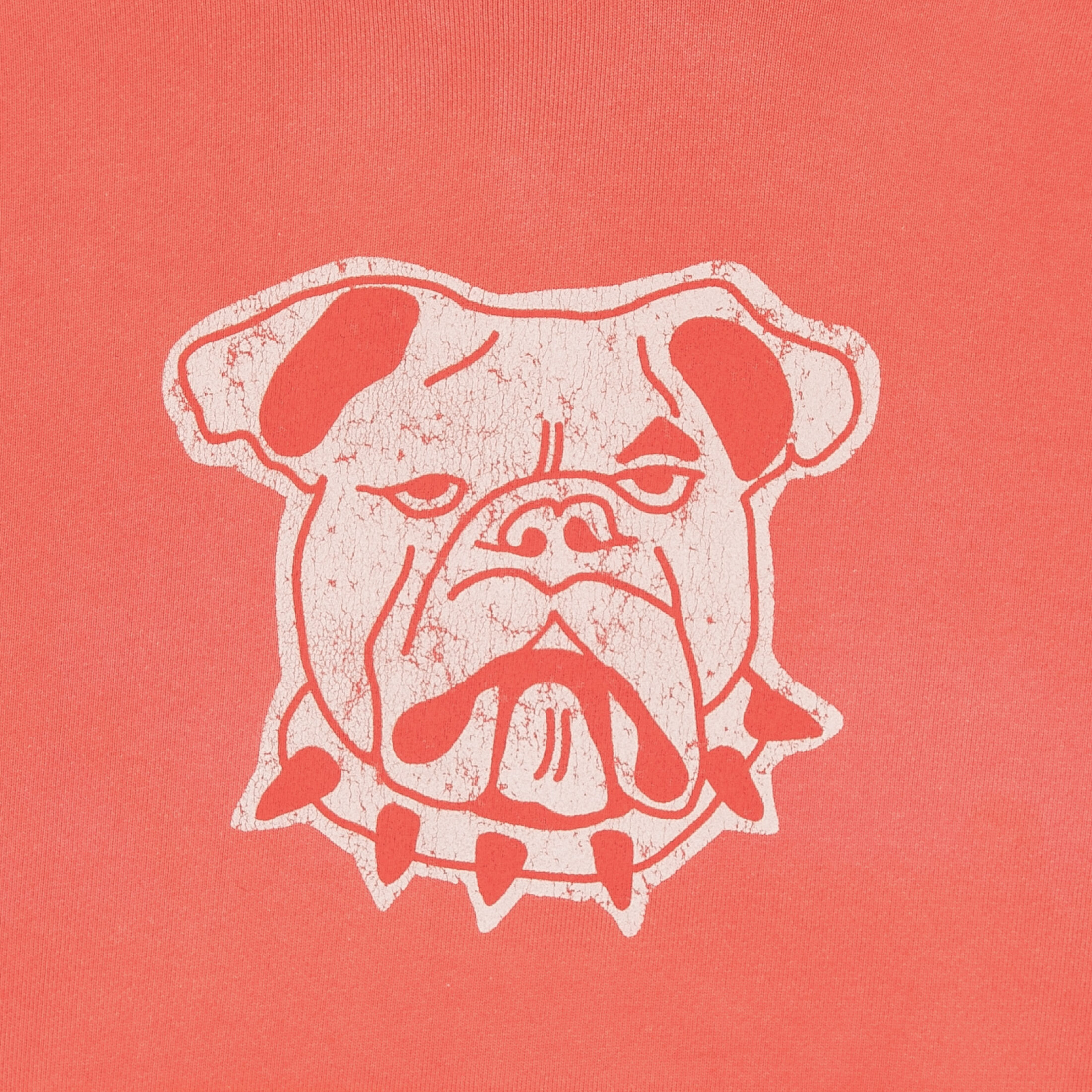 The Dead Atlantic Chapter 1 hoodie focuses on shape and feel. The overall silhouette of the Bulldog Hoodie is slightly cropped and oversized with short raw edges on the cuffs and no drawstring on the hood. The sleeves feature a reverse self stripe to give it an iconic twist that is uniquely Dead Atlantic. The bulldog graphic is inspired by retro collegiate sports logos.