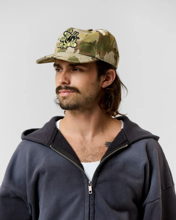 This Vintage bee logo comes from the 21st bombardment squadron that fought in WWII. “This little bee is a tough fighter and is ready for anything. He has the right spirit.” The hat body is made with washed and distressed foliage bull denim. Each one of these garments undergoes a unique wash and dye process, distressing, and fading. Each garment has its own characteristics and that is the intention.