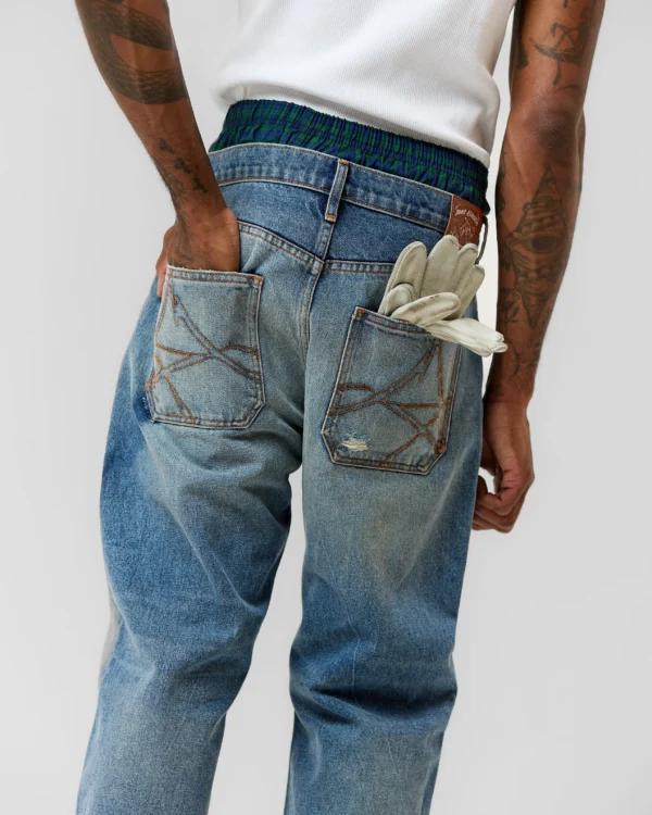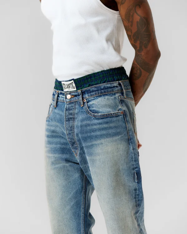 14.5 oz denim with our classic Dead Atlantic logo embellished on rear pockets. Our favorite cut with a 1 of 1 unique wash. Cut, sewn, washed in LA.