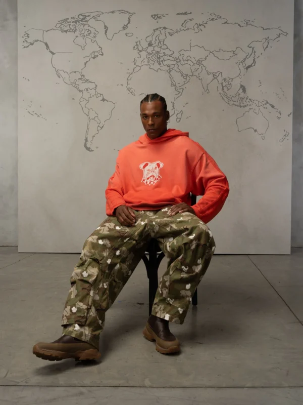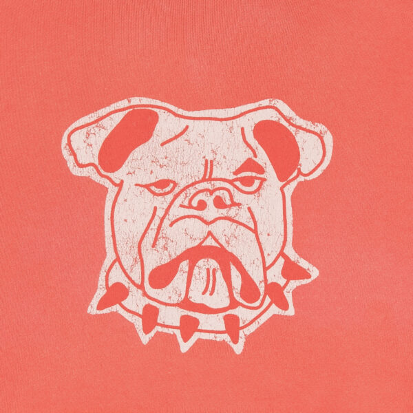 The Dead Atlantic Chapter 1 hoodie focuses on shape and feel. The overall silhouette of the Bulldog Hoodie is slightly cropped and oversized with short raw edges on the cuffs and no drawstring on the hood. The sleeves feature a reverse self stripe to give it an iconic twist that is uniquely Dead Atlantic. The bulldog graphic is inspired by retro collegiate sports logos.