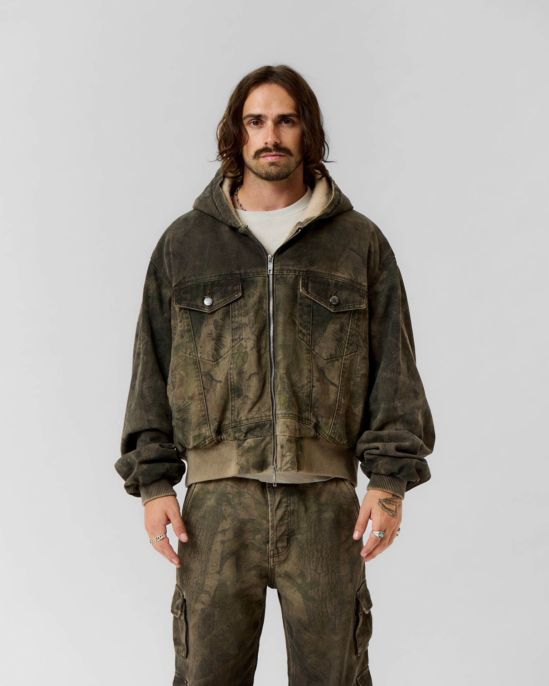 Montana is a special place for all of us. We created a custom one of one DA camo and printed on our 14.5 oz denim. The lining is insulated with 100% cotton. This piece comes cropped intentionally. Feel free to size up for longer length.