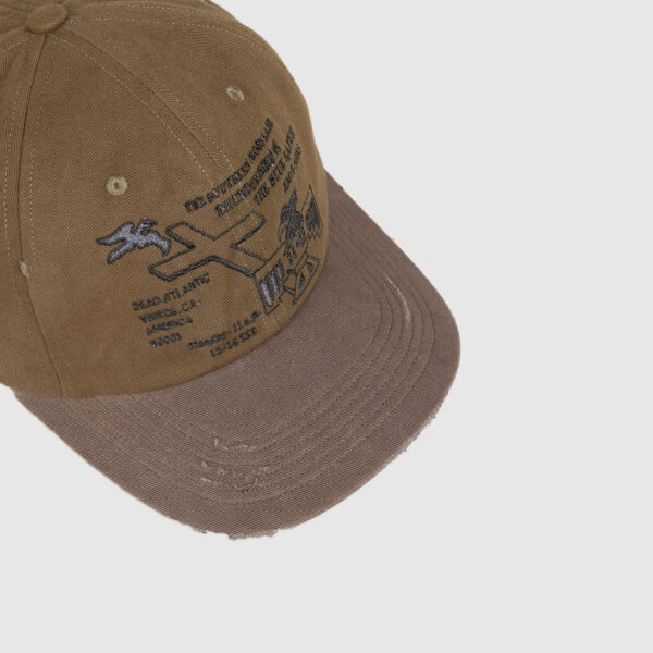 The 2-tone Thunderbird unstructured hat is inspired by rare vintage, complete with a distressed body and embroidered artwork on the front. This product is designed to be the needle in the haystack of antique hats. Each one of these garments undergoes a unique wash and dye process, distressing, and fading. Each garment has its own characteristics and that is the intention.